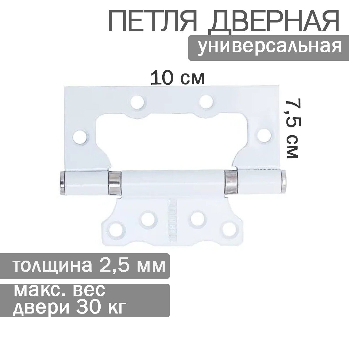 Петля накладная универсальная Аллюр 2BB WW, 100 x 75 x 2,5 мм, белая, 2шт
