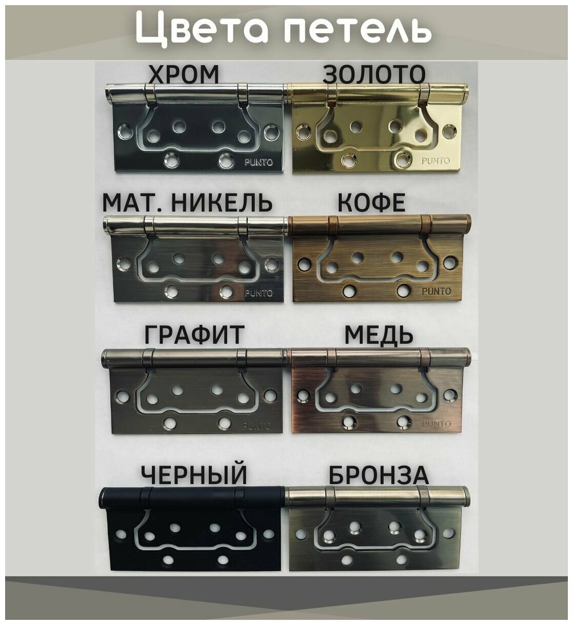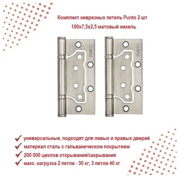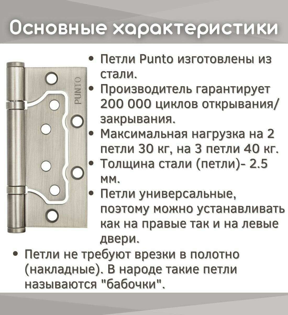 Дверные петли Punto 2шт/ Петли-бабочки/ Универсальные петли без врезки – матовый никель