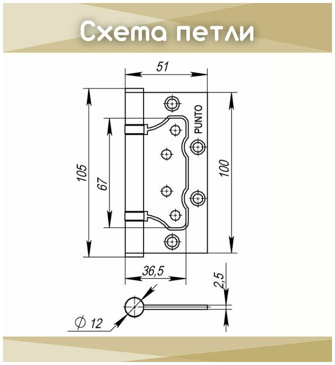 Дверные петли Punto 2шт/ Петли-бабочки/ Универсальные петли без врезки – матовый никель