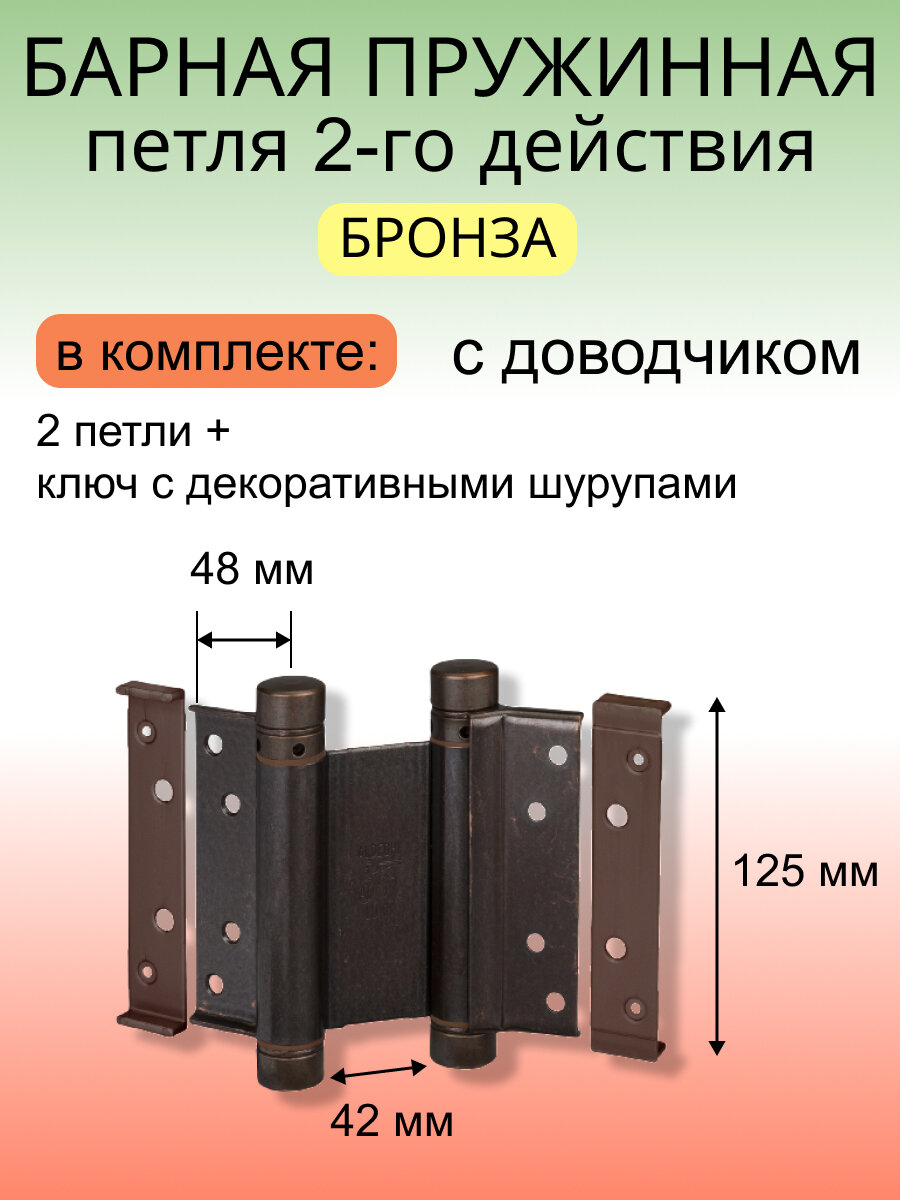 Барная пружинная петля двойного действия 2-го действ.148х50х42 мм,цвет:мат.ант.бронза,к-т:2 шт+ключ