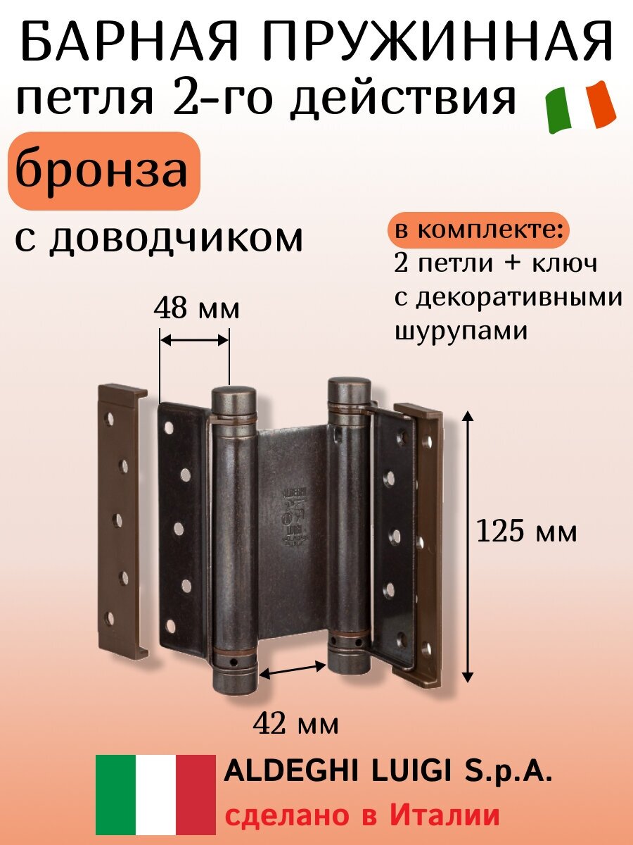 Барная пружинная петля двойного действия ALDEGHI LUIGI SpA 125х48х42 мм, бронза, к-т: 2 шт + ключ с декоративными заглушками, 101AB125B