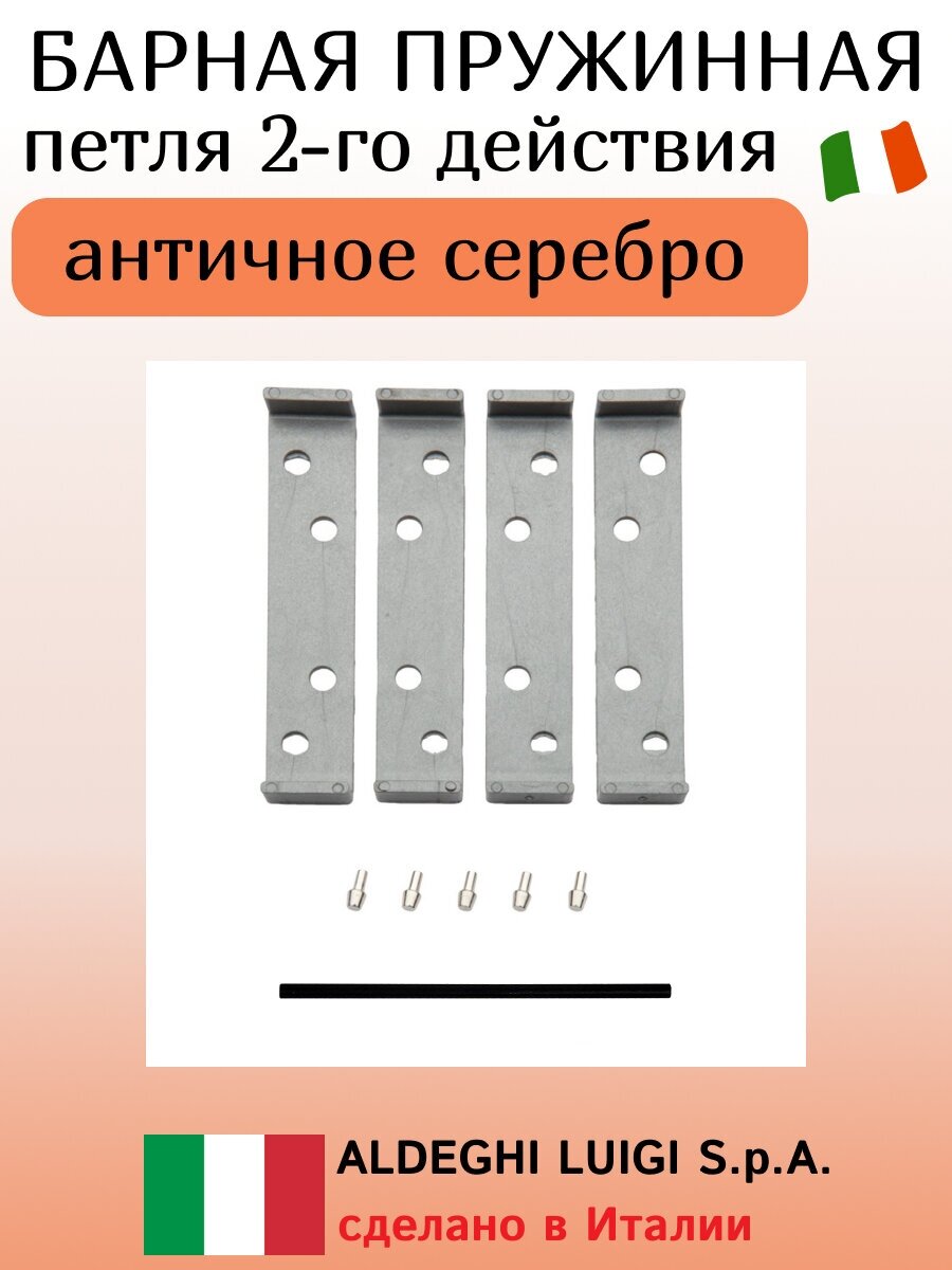 Петля барная, 2-го действ. ALDEGHI LUIGI, 101, 125х48х42 мм, цвет: античн. серебро, 2 шт+монтажн. набор
