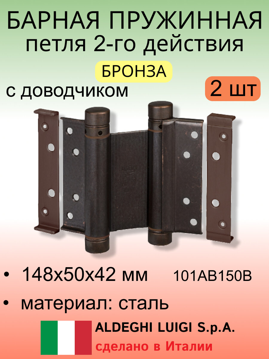 Барная пружинная петля двойного действия ALDEGHI LUIGI SPA 148х50х42 мм, цвет: бронза, к-т: 2 шт + ключ с декоративными заглушками 101AB150B