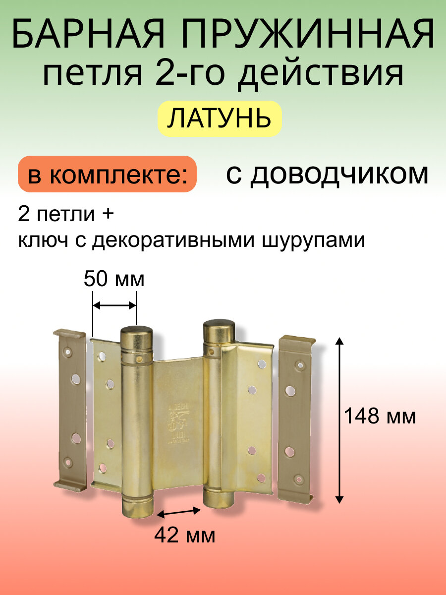 СохранитьБарная пружинная петля двойного действия ALDEGHI LUIGI S.p.A. 148х50х42 мм, цвет: латунь к-т: 2 шт + ключ с декоративными заглушками интересное: