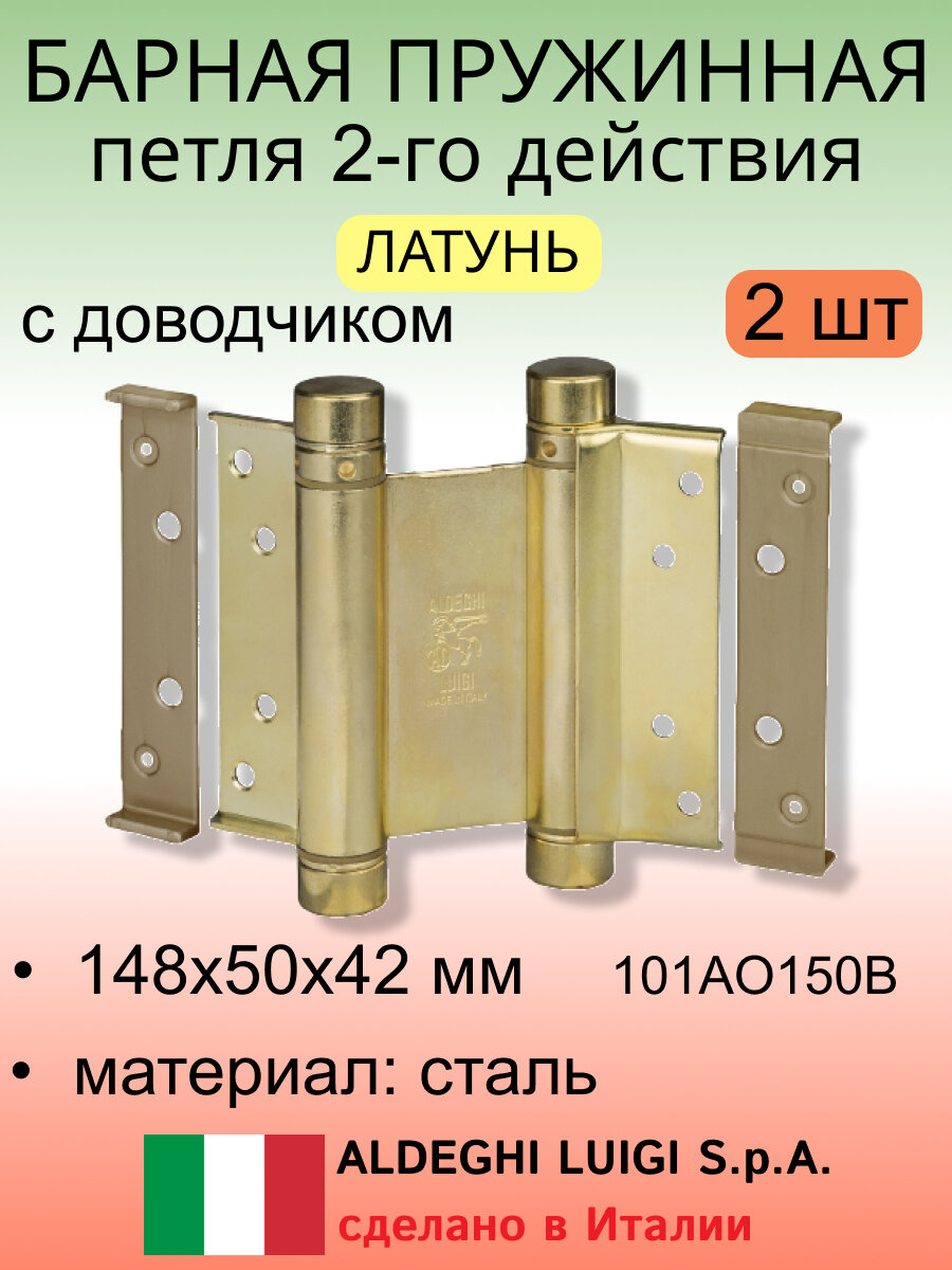 Барная пружинная петля двойного действия ALDEGHI LUIGI SPA 148х50х42 мм, цвет: латунь, к-т: 2 шт + ключ с декоративными заглушками 101AO150B