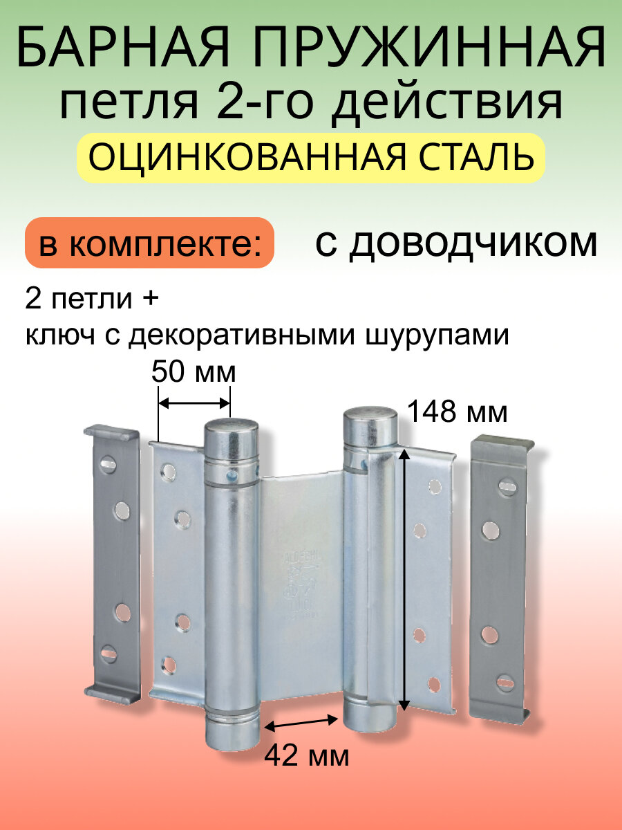 СохранитьБарная пружинная петля двойного действия ALDEGHI LUIGI SPA 148х50х42 мм, цвет: цинк, к-т: 2 шт + ключ с декоративными заглушками 101AZ150B интересное: