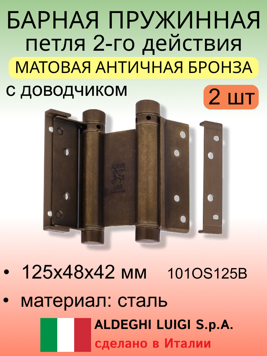 Барная пружинная петля двойного действия ALDEGHI LUIGI SpA 125х48х42 мм, бронза, к-т: 2 шт + ключ с декоративными заглушками, 101AB125B