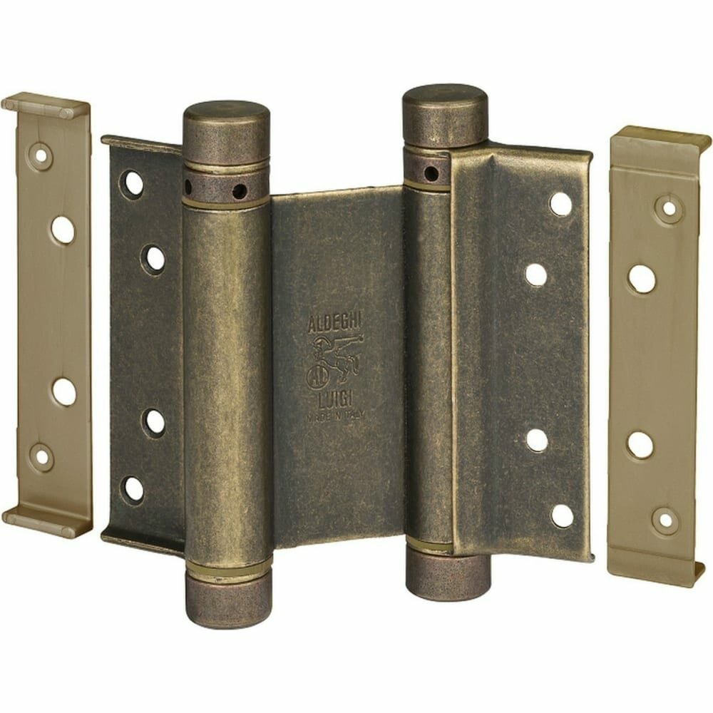 Барная пружинная петля двойного действия ALDEGHI LUIGI S.p.A. 125х48х42 мм, цвет: античная латунь, к-т: 2 шт + ключ с декоративными заглушками