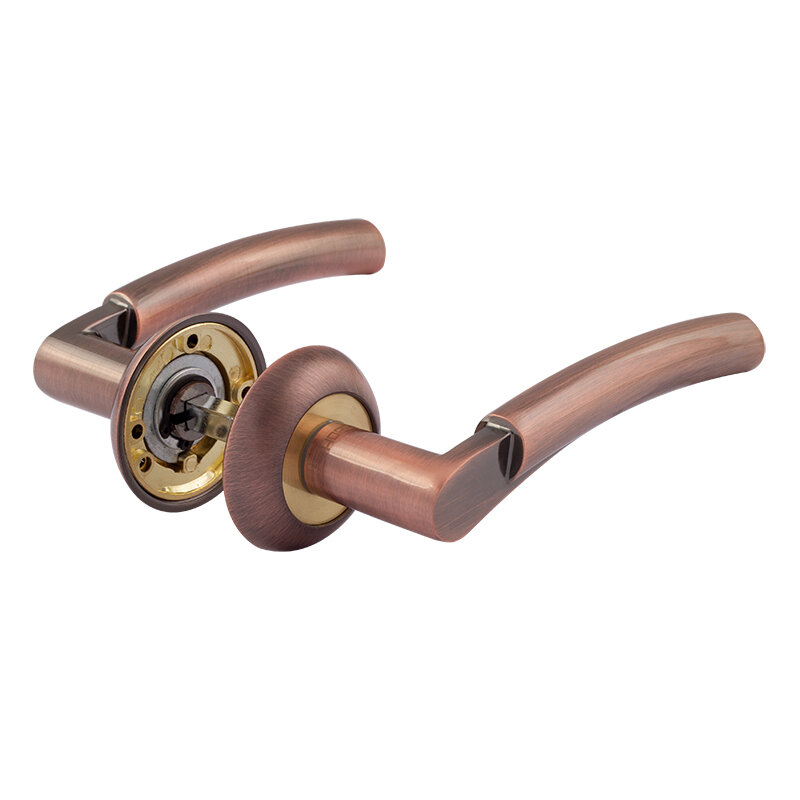 Ручка дверная межкомнатная медь с защелкой и заверткой без ключей комплект