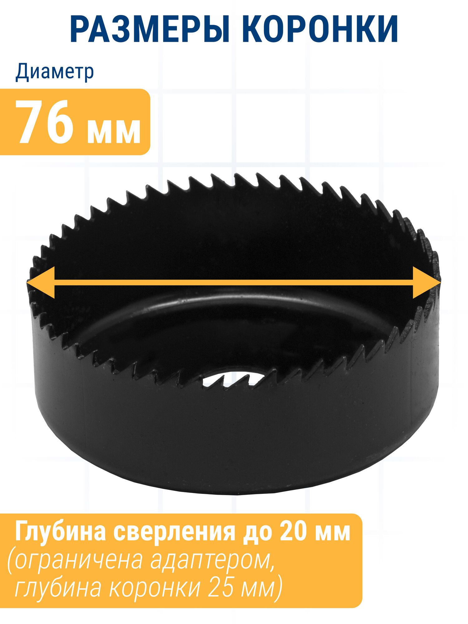 СохранитьКоронка HCS по дереву/гипсокартону ПРАКТИКА "Мастер" 76 мм, L-27мм, без адаптера (1 шт) интересное: