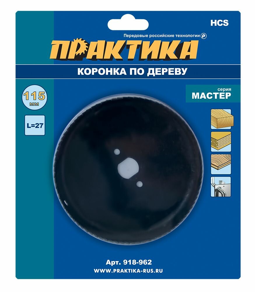 Коронка HCS по дереву/гипсокартону ПРАКТИКА "Мастер" 115 мм, L-27мм, без адаптера (1 шт)