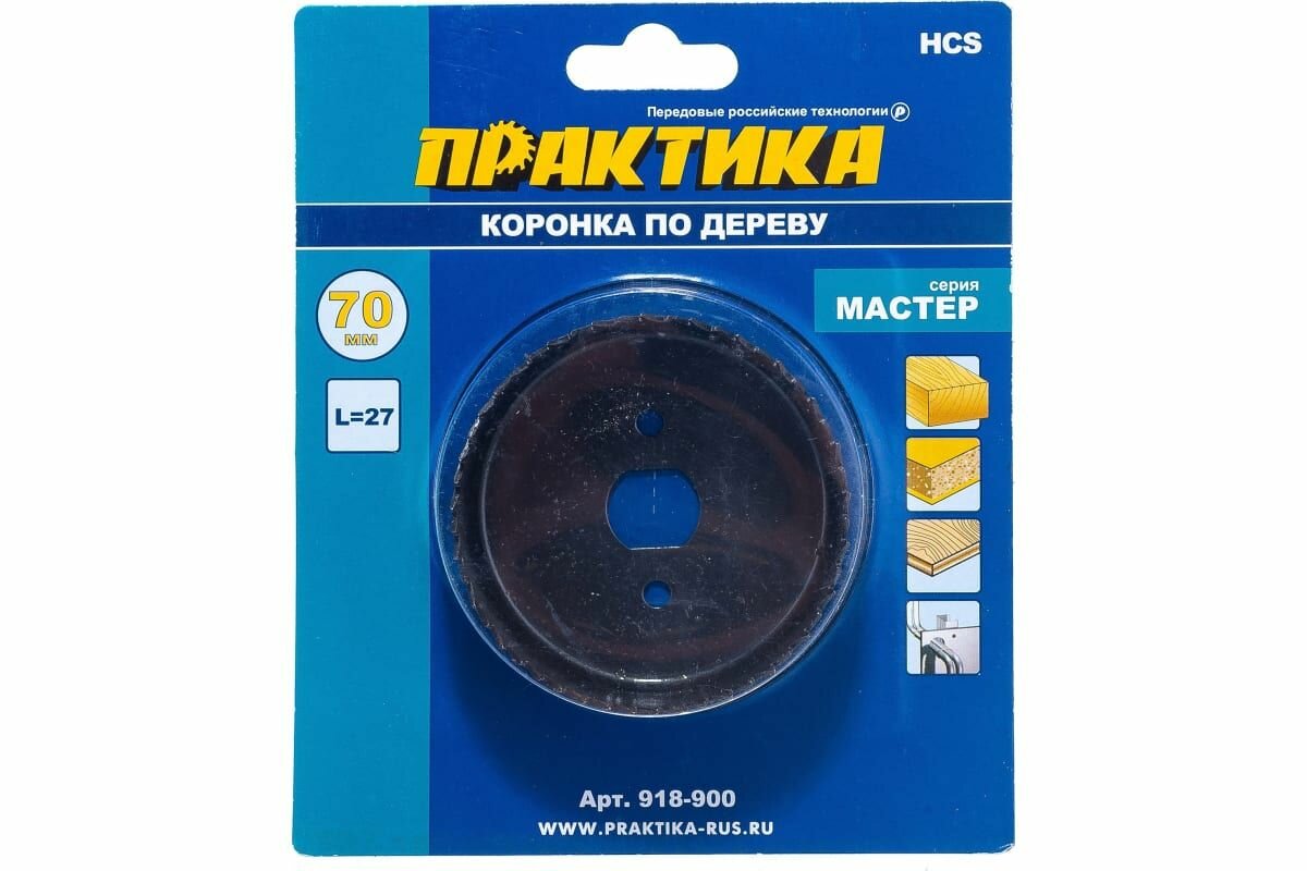 Купить Коронка HCS по дереву/гипсокартону ПРАКТИКА "Мастер" 70 мм, L-27мм, без адаптера (1 шт)