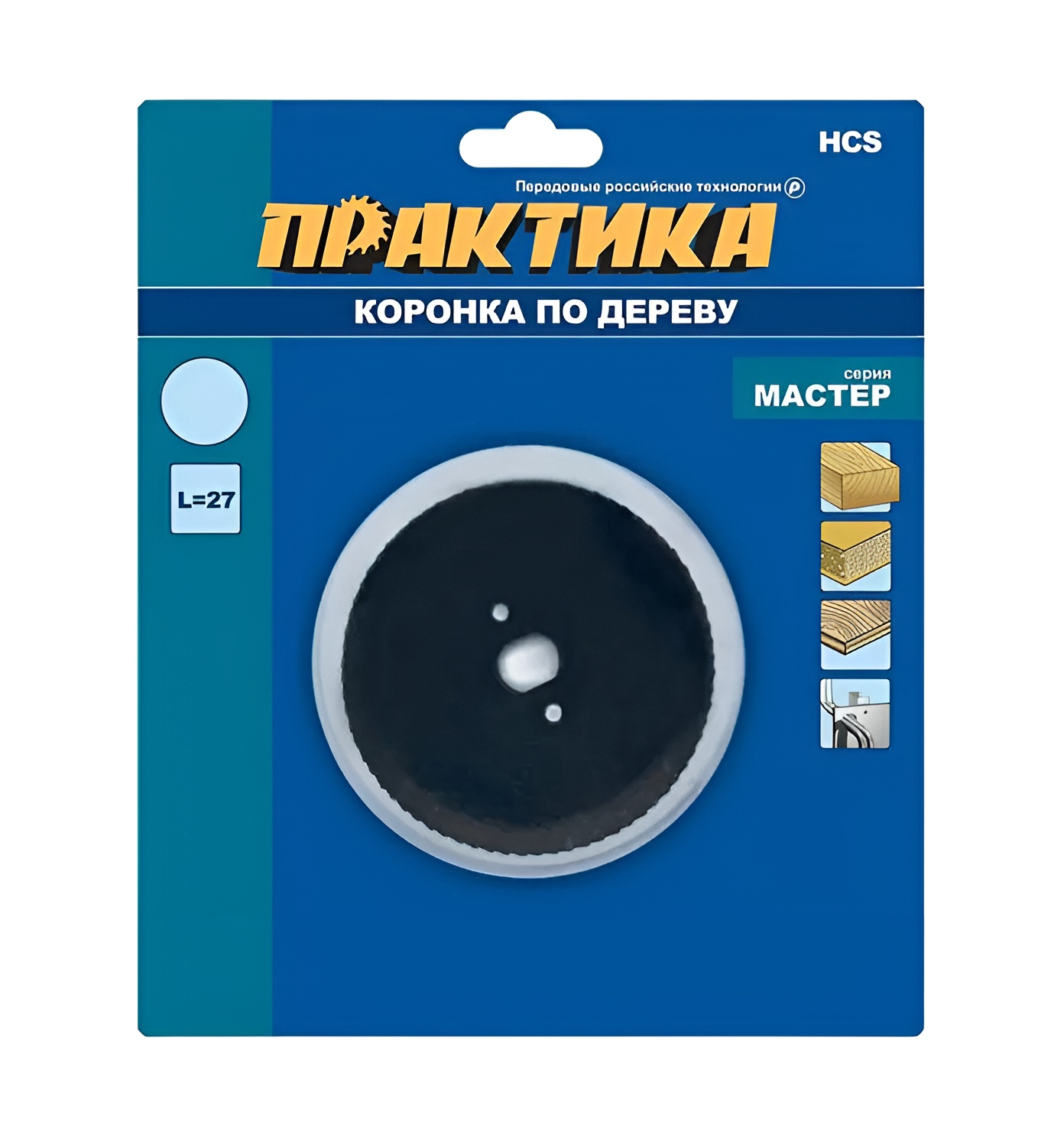 Коронка HCS по дереву/гипсокартону ПРАКТИКА "Мастер" 150 мм, L-27мм, без адаптера (1 шт), блистер