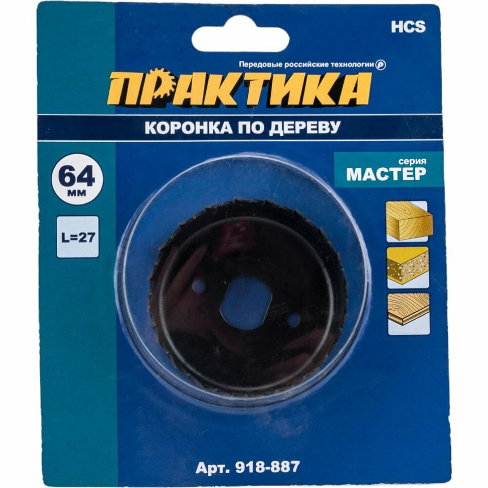 Купить Коронка HCS по дереву ПРАКТИКА "Мастер" 64 мм, L-27мм, без адаптера (1 шт), блистер