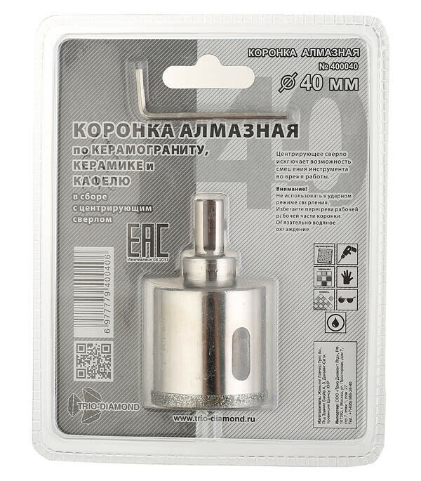 Коронка алмазная 40мм Trio-Diamond по керамике и кафелю с центр. сверлом400040