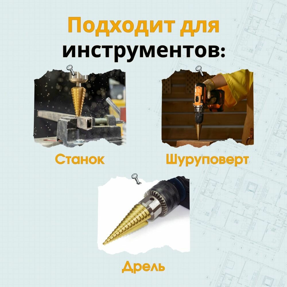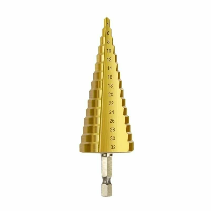 Купить Сверло ступенчатое по металлу для отверстий 4-32 мм, с титановым покрытием