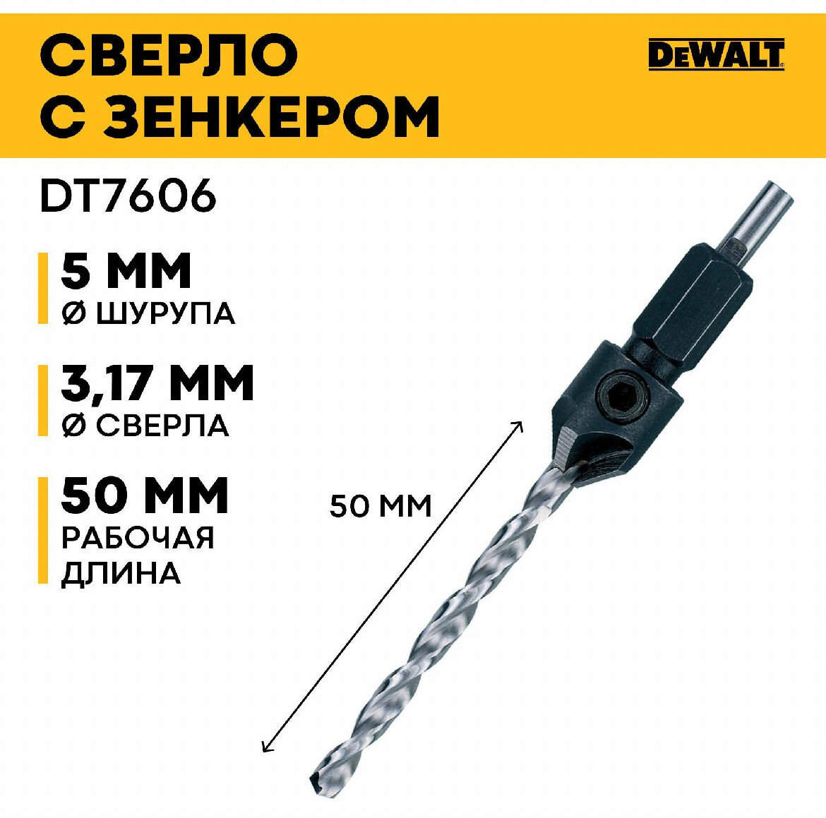 Сверло по дереву, по бетону, зенкер DeWALT DT7606-XJ 5 x 50 мм интересное: