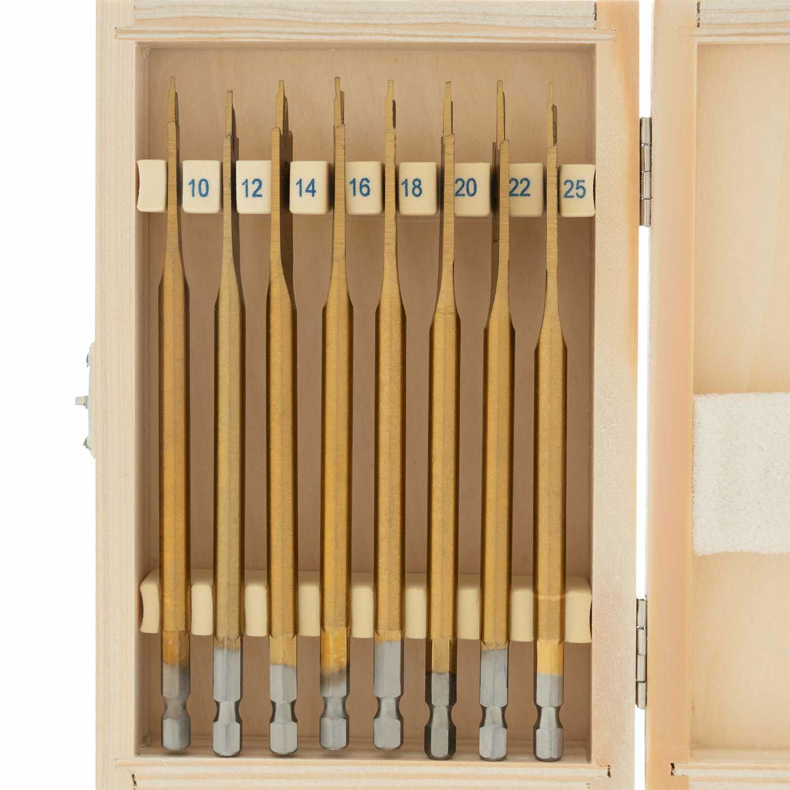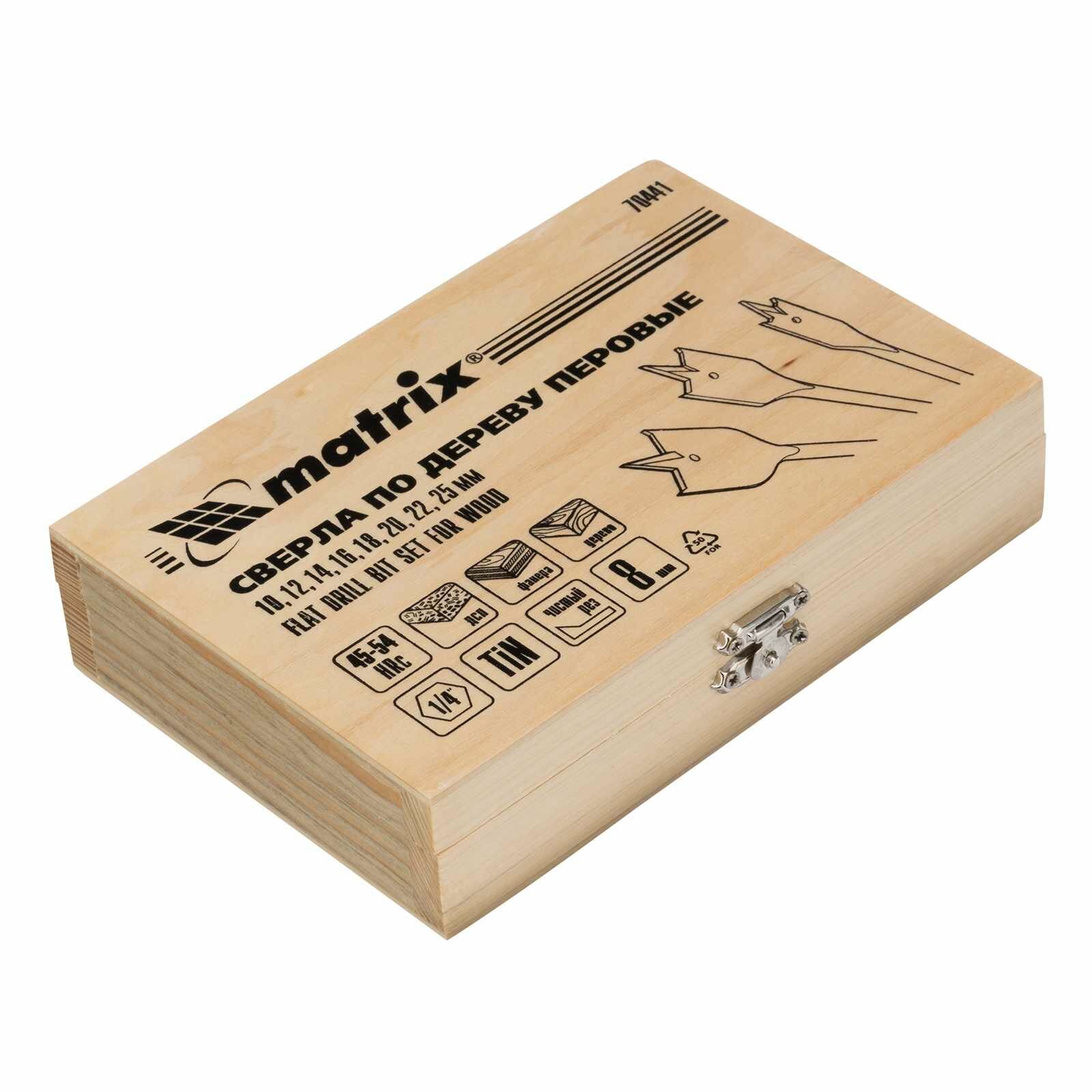 Набор сверл перовых по дереву, 10-12-14-16-18-20-22-25 мм, 8 шт, деревянный кейс Matrix
