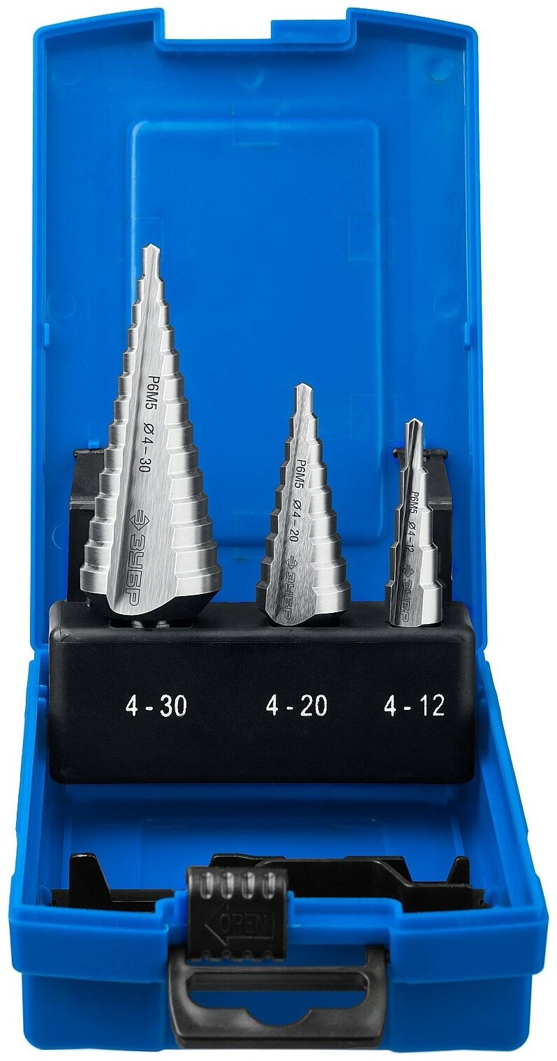 Набор ступенчатых сверл (Р6М5; 3 шт.) по металлу Зубр 29670-4-30-H3_z01