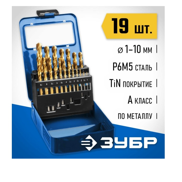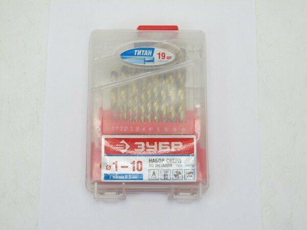 Набор ЗУБР Свёрла по метал с покр. нитрид титана, в пласт боксе, HSS 1-10мм, 19 шт 29617-Н19