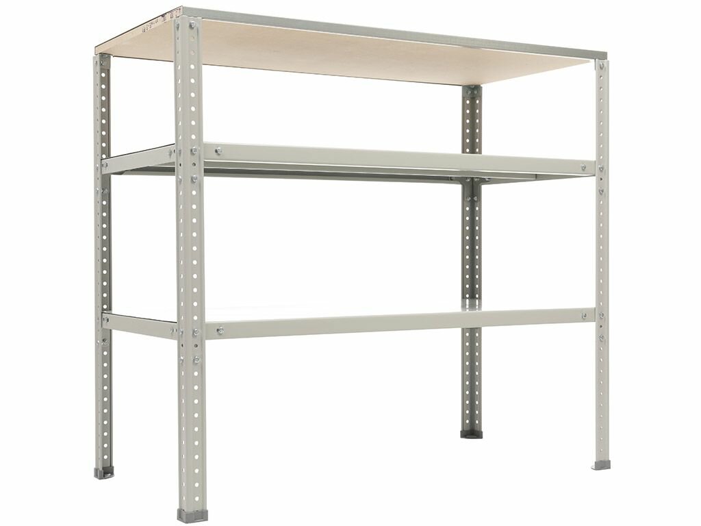 | Дополнительная информация | на верхней части столешницы установлена накладка из оцинкованного листа металла толщиной 1.2 мм; опоры из профиля сечением 40х40 мм, толщина стали 1.5 мм, шаг перфорации 50 мм; полки с максимальной нагрузкой до 100 кг; верстак возможно дополнить ящиком (нагрузка 30 кг), экраном и комплектом освещения |