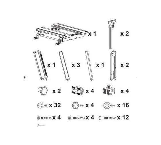 | Подробная комплектация | Верстак; 4 зажима; Ключ. |