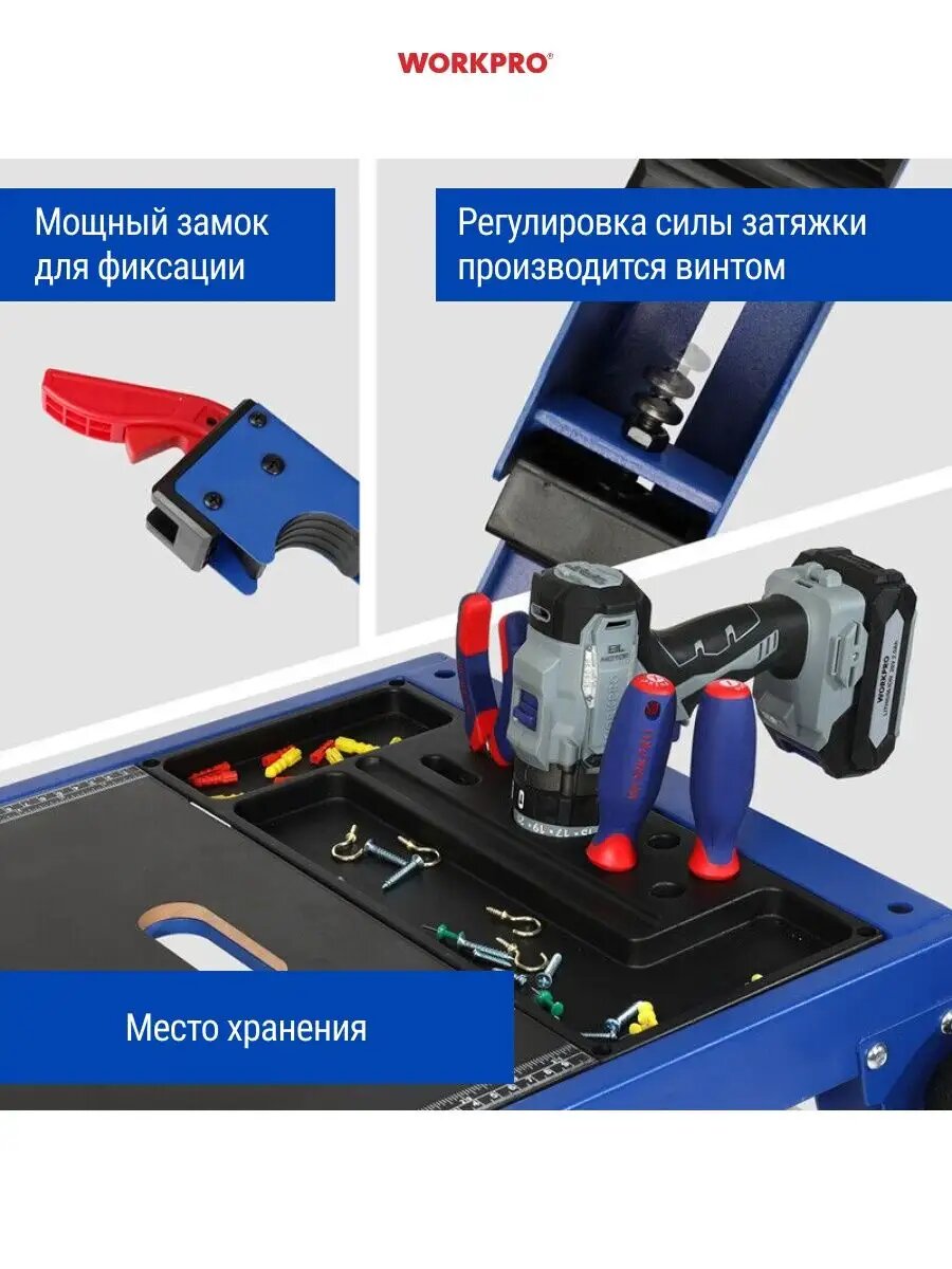 Верстак 4-в-1 складной многофункциональный WORKPRO WP289020 интересное: