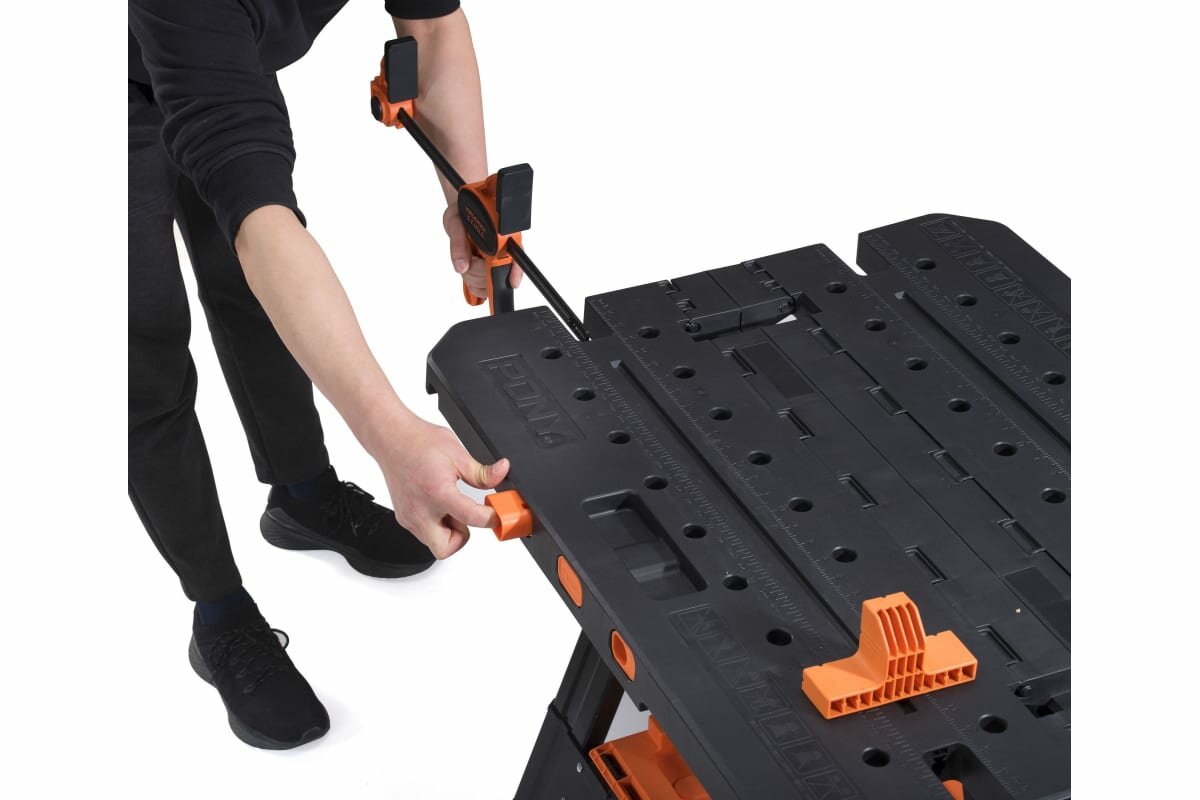 | Дополнительная информация | грузоподъемность козлы для пиления: 450 кг; лоток для инструментов: 9 кг; верстак со струбцинами и козлы 2 в 1; макс. диапазон зажима - 75 см; в комплекте зажимы Jorgensen EZ 136 кг |