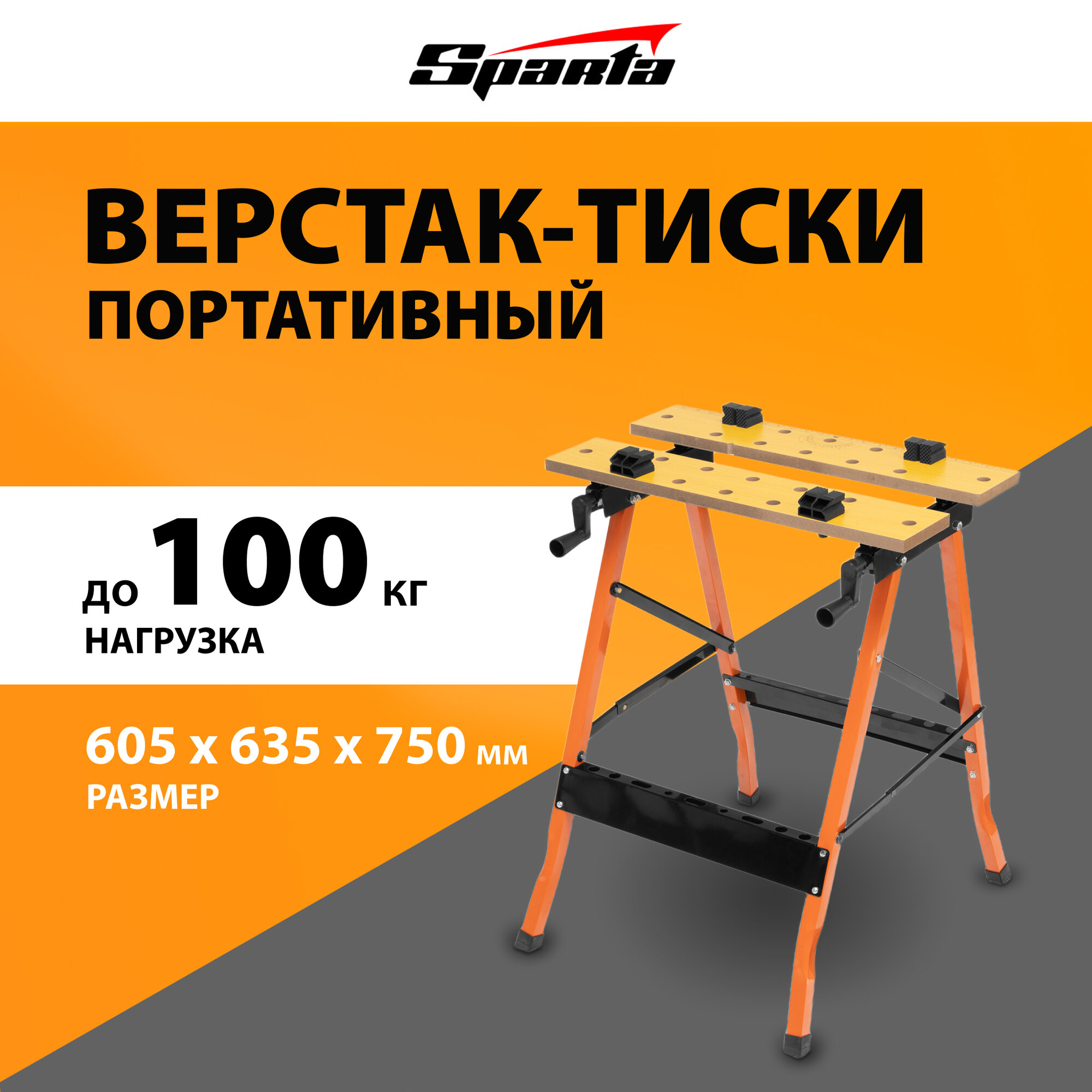 Купить Верстак-тиски Sparta 605 х 635 х 750 мм, портативный 257065