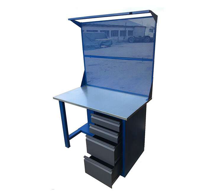Вэлмет Верстаки слесарные Wellmet Стол верстак слесарный металлический с экраном с одной тумбой и 4 ящиками, 1800 мм, серия MasterLine, Wellmet 1800 ML/ML-4