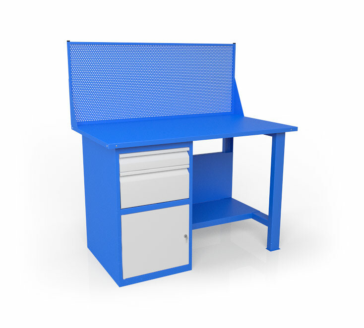 Стол металлический Metalex 750х1400х600 с выдвижными ящиками и перфопанелью
