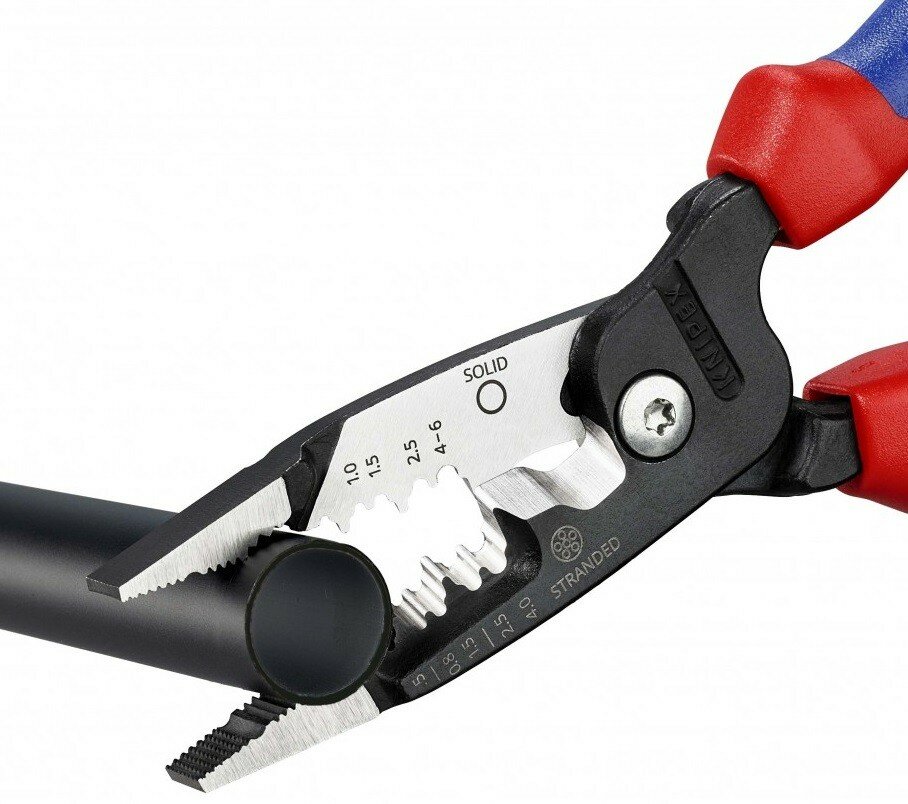 Купить Клещи электромонтажные, 5-в-1, зачистка: 0.75 – 4 / 6 мм², рез: Ø 15 мм / 50 мм², 200 мм, фосфатированные, 2-комп ручки Knipex KN-1372200ME