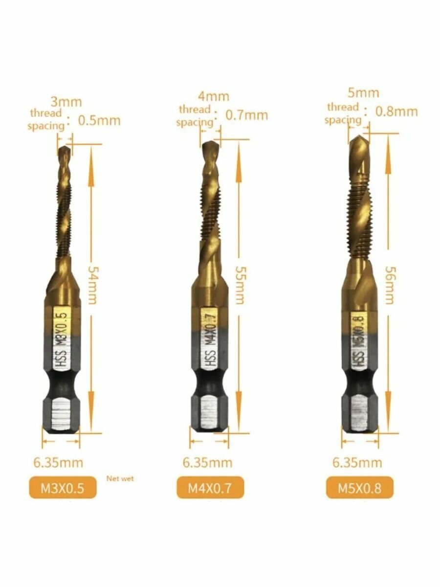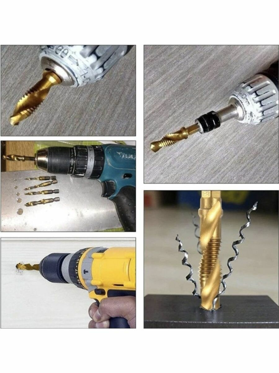 Сверло-метчик с титановым покрытием, набор из 6 штук интересное:
