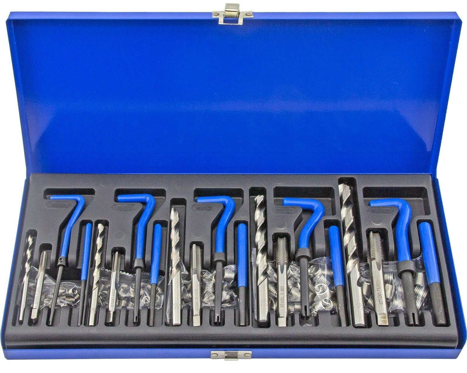 | Подробная комплектация | Набор включает в себя приспособления для восстановления резьбы с диаметром: M5 X 0.8 x 6.7 мм M6 X 1.0 x 10.8 мм M8 X 1.25 x 10.8 мм M10 X 1.5 x 13.5 мм M12 X 1.75 x 16.3 мм |