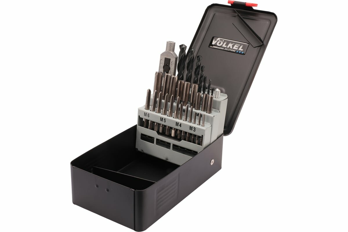 Купить VOLKEL Набор метчиков комплектных M3-M12 HSS-G DIN352 (+ вороток, сверла) 29пр V49510