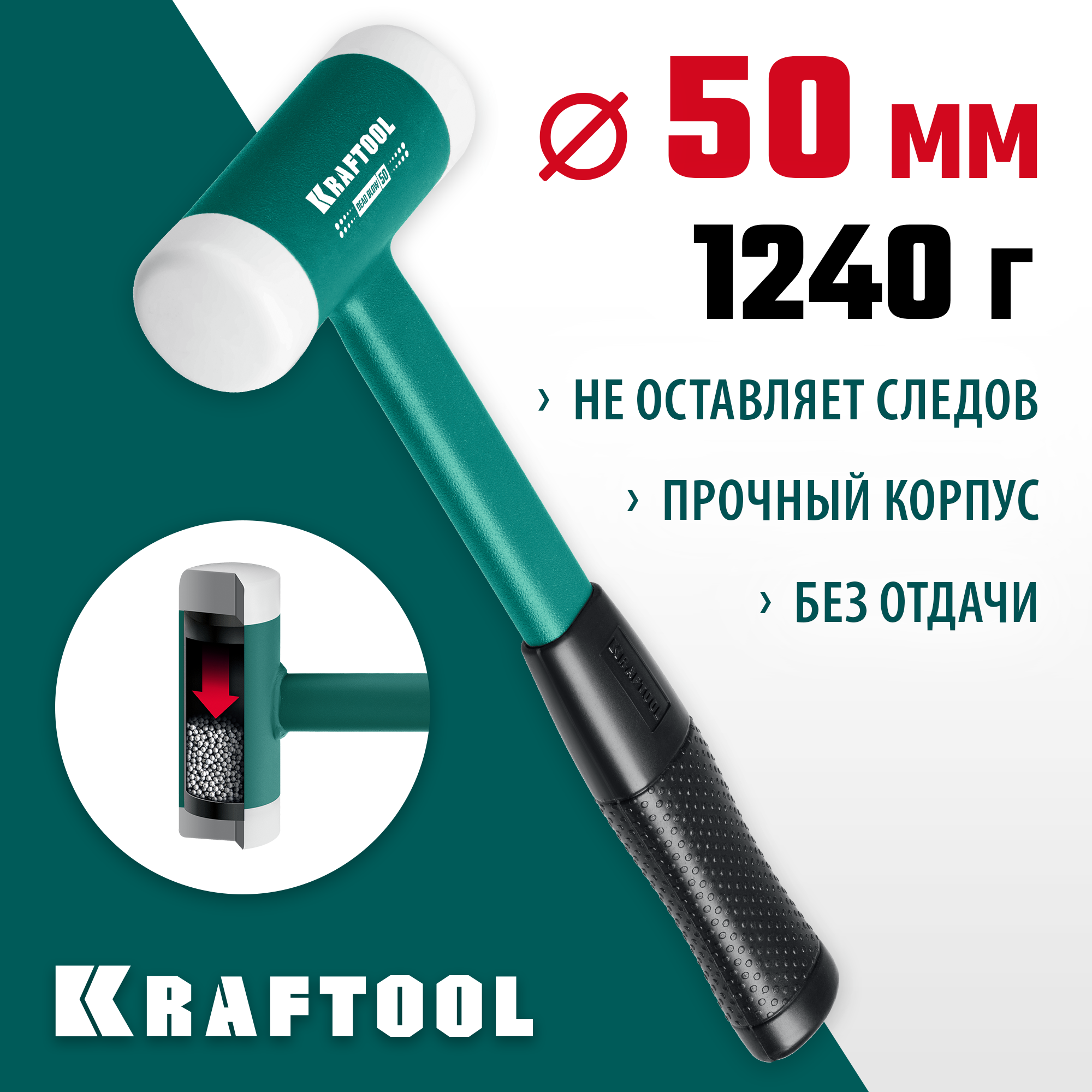 KRAFTOOL Dead Blow 40 мм, 680 г, Безынерционный молоток (2078-40)