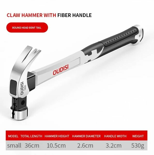 Молоток-гвоздодер Oudisi 10 Oz с магнитным захватом