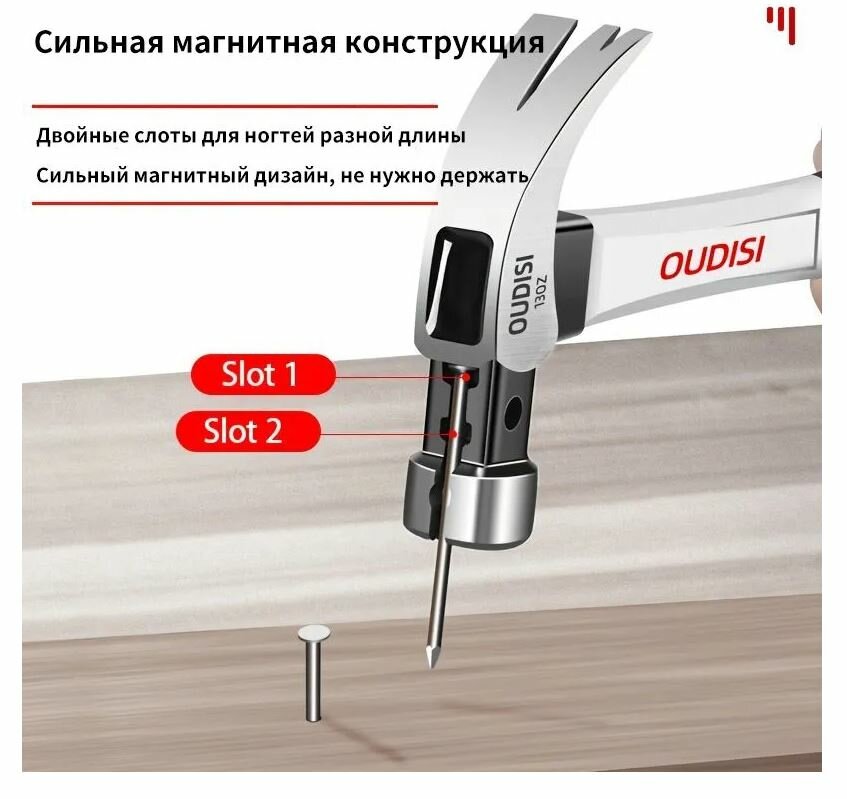 Молоток-гвоздодер Oudisi 10 Oz с магнитным захватом интересное: