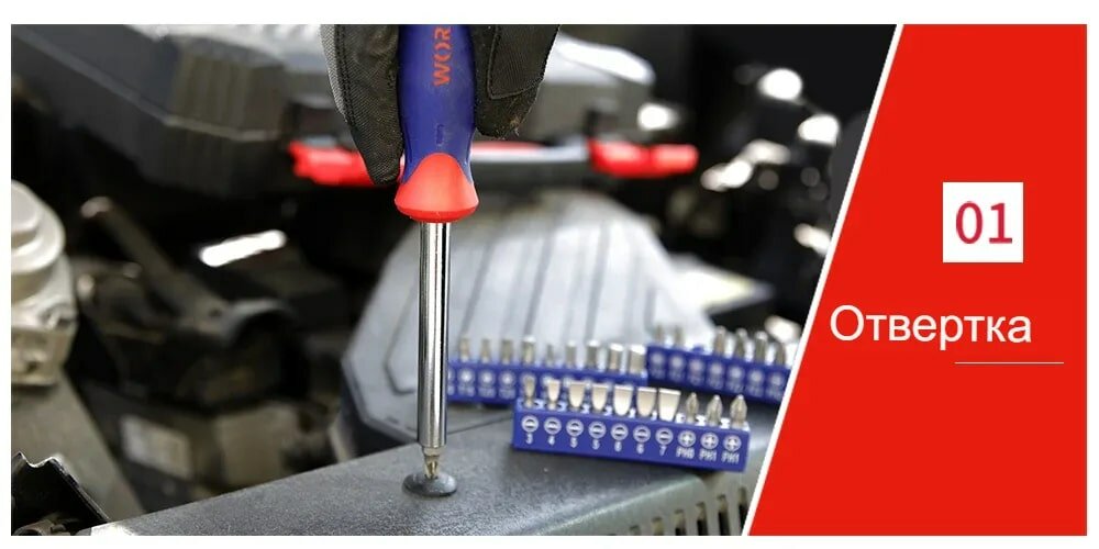 | Инструменты в комплекте | длинногубцы / ключ разводной / ключи гаечные / ключи имбусовые (шестигранные) / кусачки / молоток / отвёртки / рукоять для бит / трещотка |