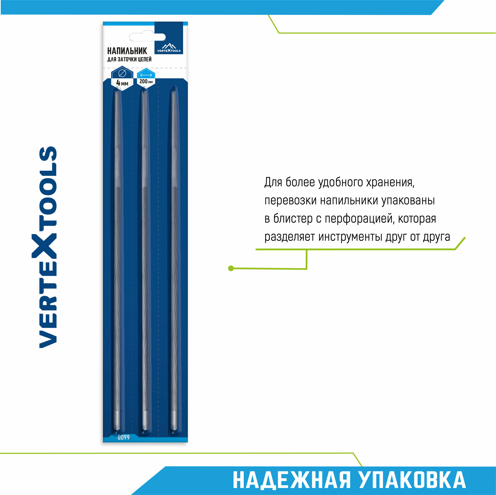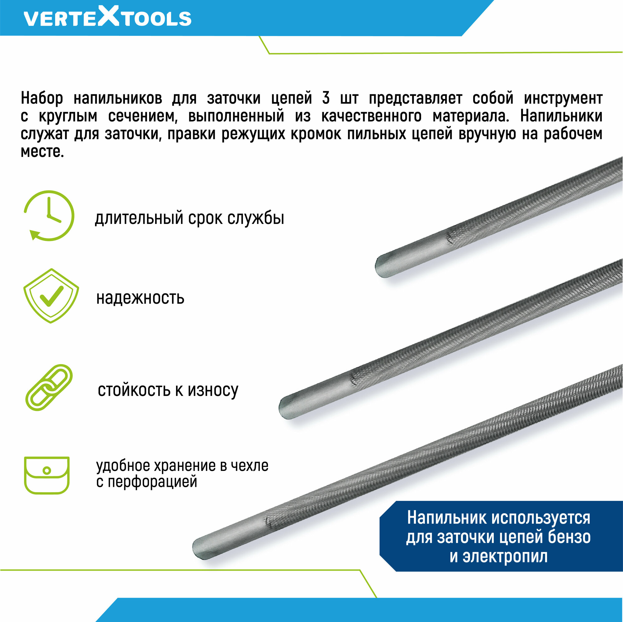 Напильник для заточки цепей VertexTools 4 мм. 3 шт. интересное: