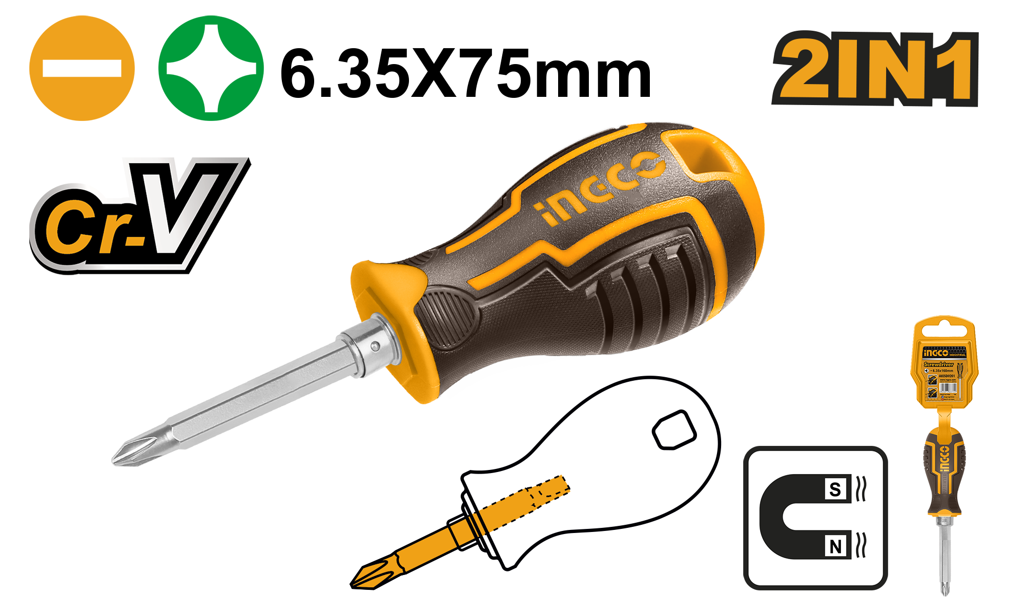 Купить Отвертка INGCO SL6 PH2 75 мм AKISD0202