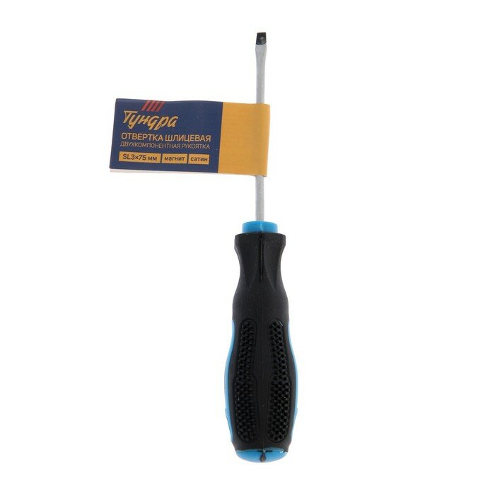 Отвертка шлицевая тундра, сатин, магнит, двухкомпонентная рукоятка, SL3 х 75 мм, 3 штуки интересное:
