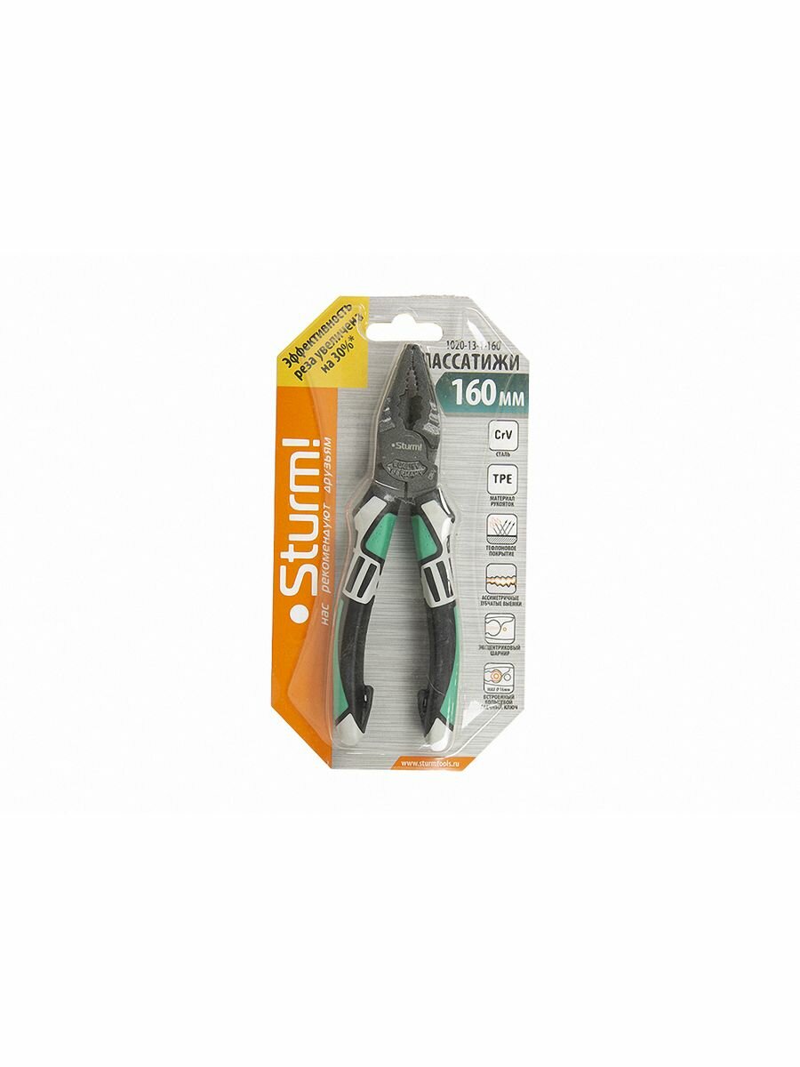 Купить Sturm Пассатижи 160мм, CrV,+30% к силе реза, тефлоновое покрытие,TPE рукоятки, 1020-13-1-160