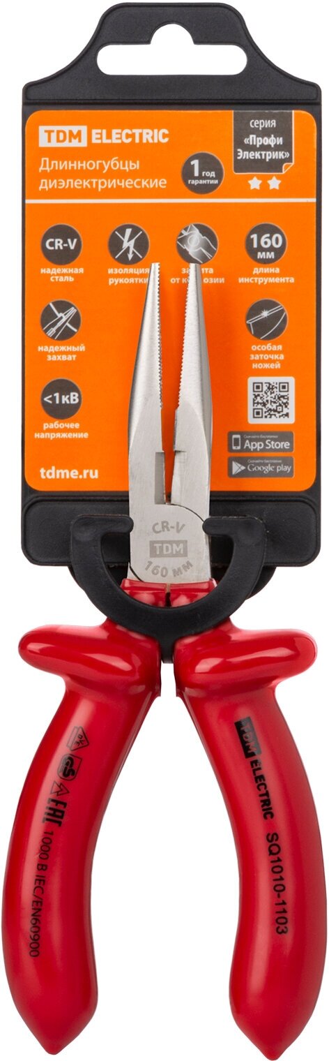 Длинногубцы диэлектрические, 160 мм, 1000 В, CR-V, «ПрофиЭлектрик» TDM интересное: