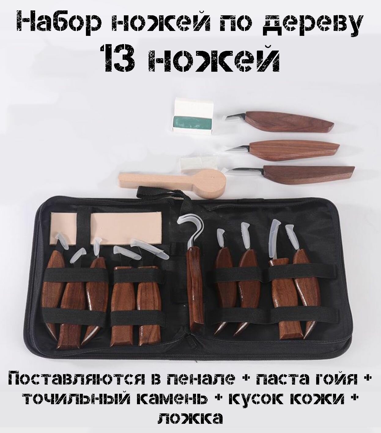 Набор ножей фигурных резцов для резьбы по дереву 13 шт, для скульптур, ложек, чаш и посуды