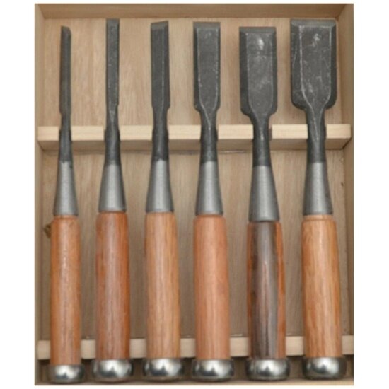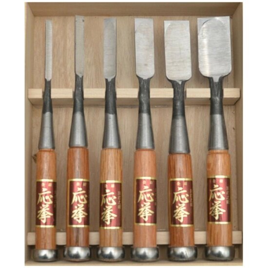 Комплект стамесок Fujikawa (Фудзикава) Shirogami Z.F-PRO-6,количество 6 шт.:шириной 6, 9, 12, 18, 24, 30 мм с голубым кольцом в деревянном кейсе интересное: