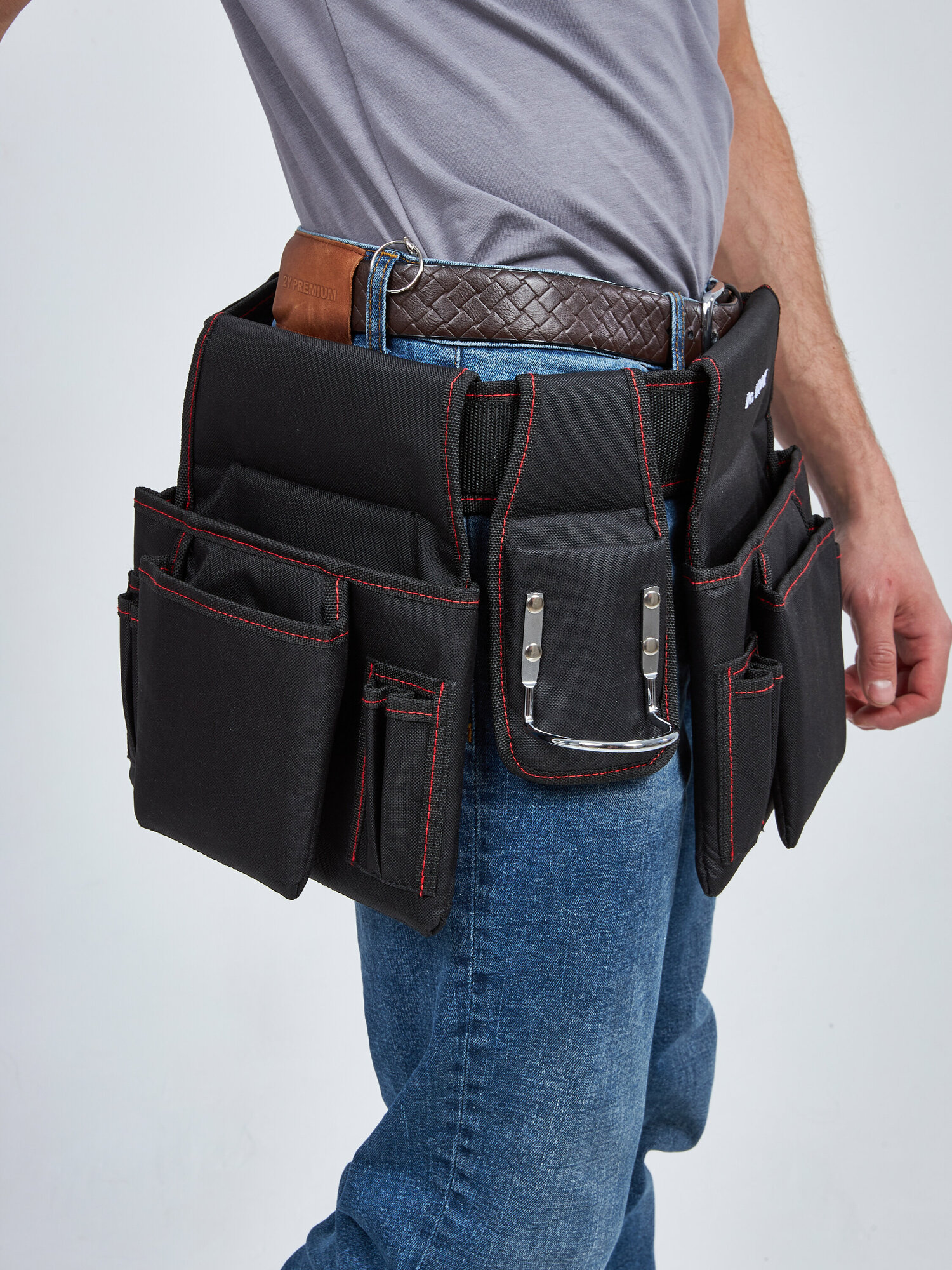 Сумка-пояс для инструментов универсальная строительная 28 карманов с держателем для молотка и рулетки