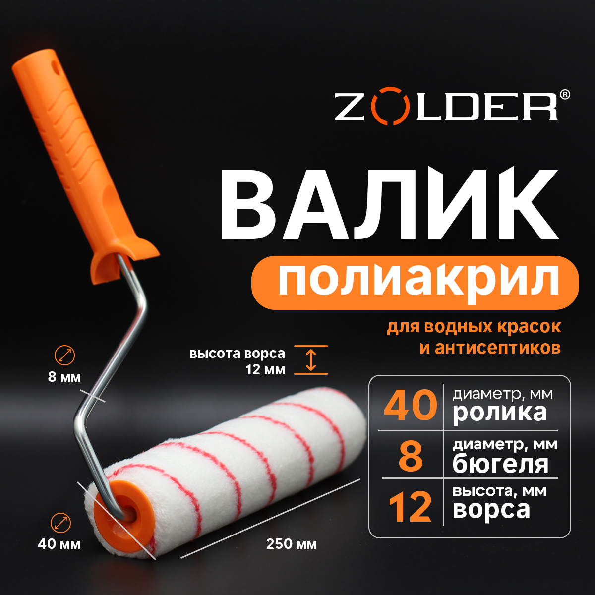 Валик полиакриловый 250 мм с ручкой 8 мм (ядро 40 мм, ворс 12 мм) ZOLDER