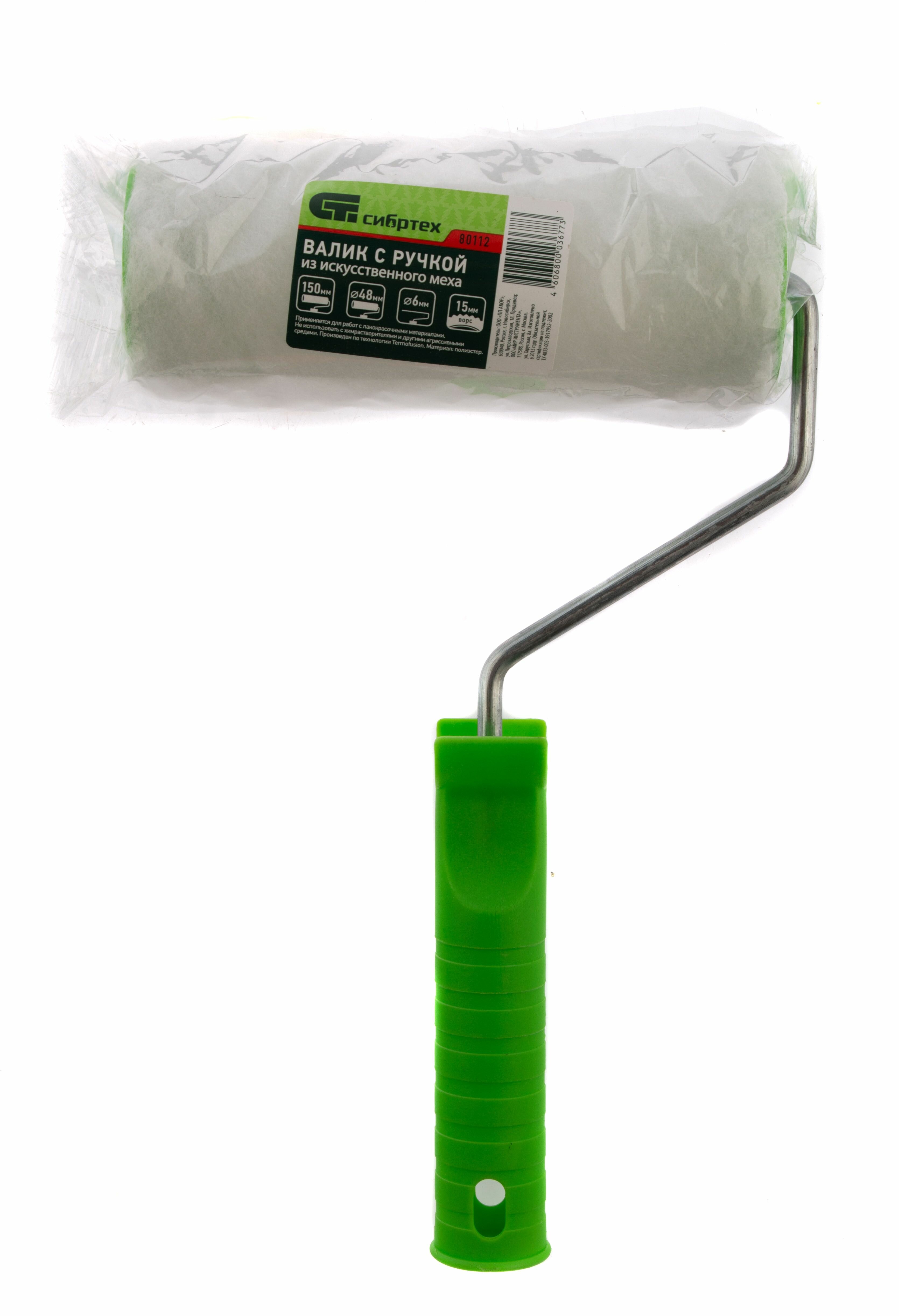 Валик искусственный МЕХ с ручкой 150 мм ворс 15 мм D 48 мм D руч. 6 мм Сибртех интересное: