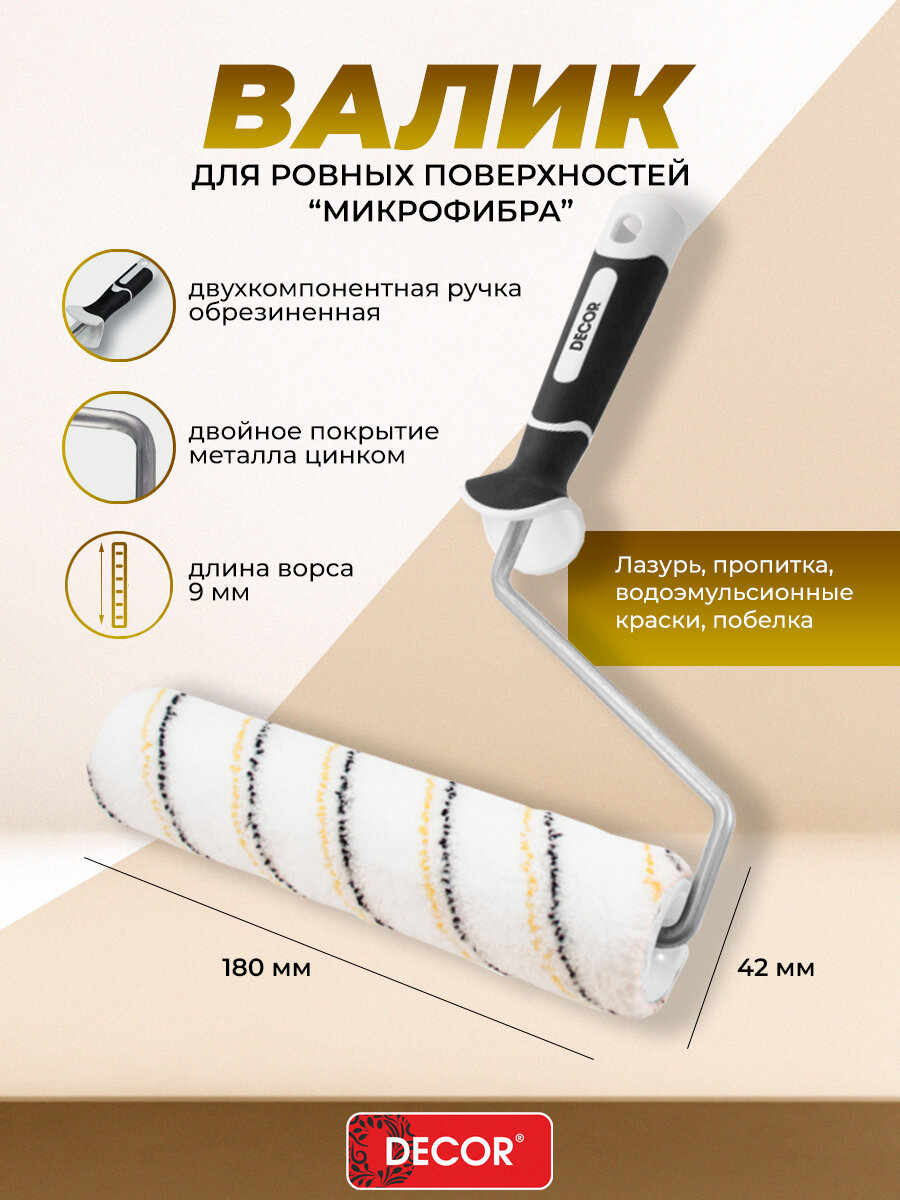 Купить Валик decor 480-4180 с 2К ручкой 8мм, 180мм, d42мм, ворс 9мм, микрофибра